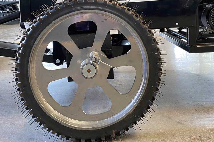 7、?雙輪獨(dú)立移動(dòng),靈活方便,通過電驅(qū)動(dòng)兩輪行走系統(tǒng),使得輪子可獨(dú)立移動(dòng),與整平頭互不影響,采用手動(dòng)控制輪子的前進(jìn)、后退、轉(zhuǎn)向及行進(jìn)速度,移動(dòng)非常方便。